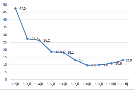 1-11月,研究和试验发展行业收入20.1亿元,同比增长3.6%。该行业单位规模相对较小,1-11月有3家收入过亿元,比1-8月持平,在疫情常态下,有序恢复正常后,收入平稳增长。