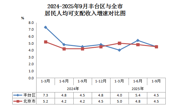 2024-2025年9月丰台区与全市居民人均可支配收入增速对比图