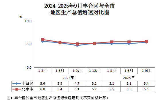 2024-2025年9月丰台区与全市地区生产总值增速对比图