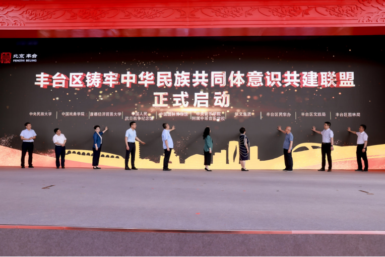 开幕式上,中央民族大学、首经贸大学、中央音乐附中等在内的12家单位、院校建立丰台区铸牢中华民族共同体意识共建联盟。