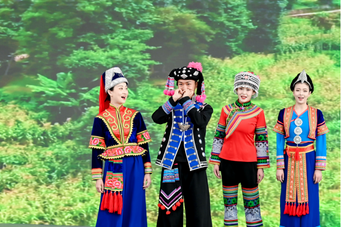 随后,开幕式现场进行了“原生态”表演-哈尼族多声部合唱;北京十中内高班同学带来的《舞起幸福鼓》、中央音乐学院附中献上童声合唱《民族团结一家亲童心共筑中国梦》。值得一提的是,历史悠久的哈尼族多声部民歌,主要流传在红河县以普春村为中心的数个村落中,以8个声部的原生形态展现出民歌与生产、梯田与农耕相伴而生的场景,它是中华民族音乐的一块璀璨的瑰宝。