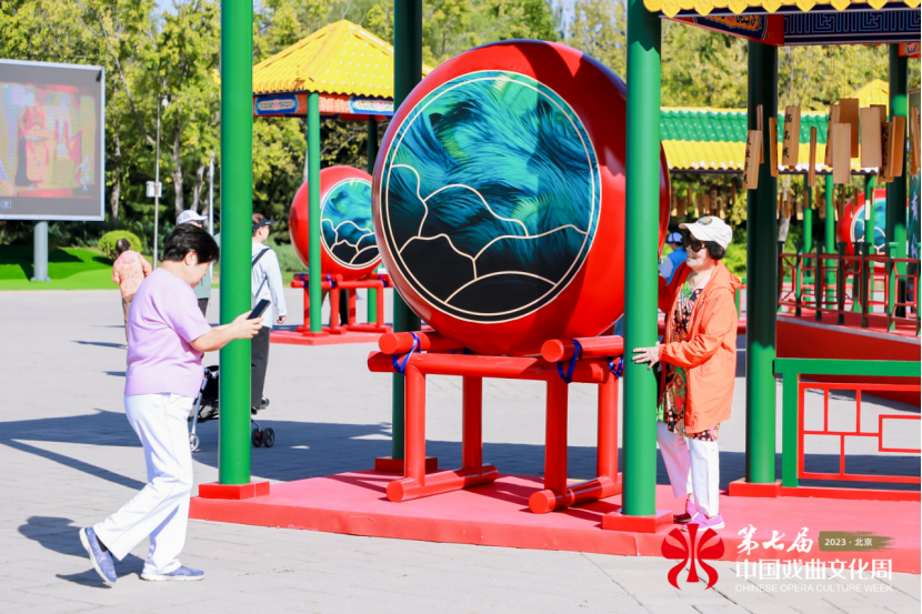 在斑斓秋色中漫步北京园博园,伴着悠扬婉转的唱腔移步换景,探索“园博十年,家乡百戏”地方园唱地方戏的浪漫与多彩,连身边走过的工作人员也身着戏曲元素服饰……处处装点的戏曲风,让游客沉浸式感受“入园即入戏”,成为“戏中人”。