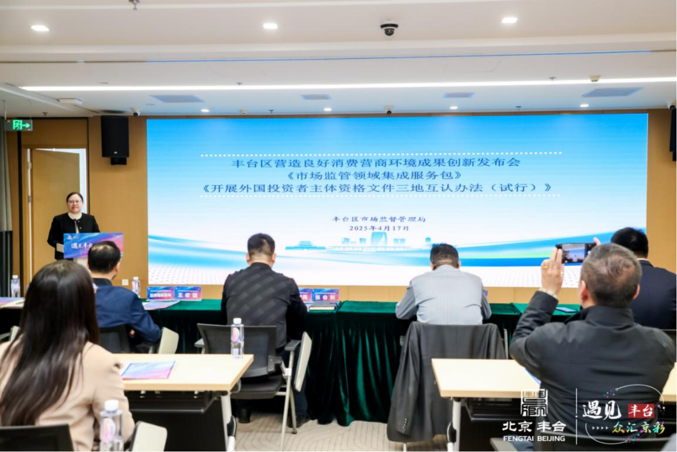 丰台区市场监管局党组成员、副局长孙凰发布《丰台区市场监管局集成服务包》及《开展外国投资者主体资格文件三地互认办法(试行)》。