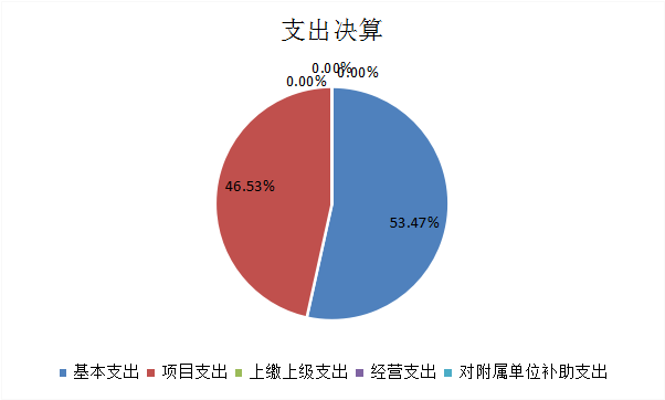 2024年度本年支出合计18691.91万元,比上年减少2622.8万元,下降12.31%,其中:基本支出9995.26万元,占支出合计的53.47%;项目支出8696.65万元,占支出合计的46.53%;上缴上级支出0万元,占支出合计的0%;经营支出0万元,占支出合计的0%;对附属单位补助支出0万元,占支出合计的0%。
