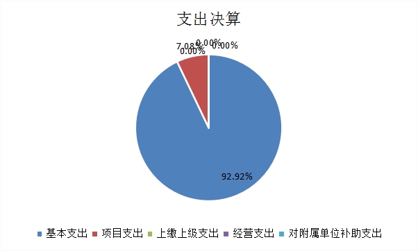 2024年度本年支出合计775.77万元,比上年增加1.75万元,增长0.23%,其中:基本支出720.84万元,占支出合计的92.92%;项目支出54.93万元,占支出合计的7.08%;上缴上级支出0万元,占支出合计的0%;经营支出0万元,占支出合计的0%;对附属单位补助支出0万元,占支出合计的0%。