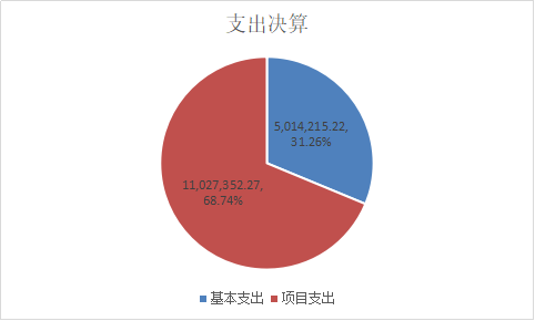 2022年度本年支出合计1604.16万元,比上年增加1604.16万元,增长100%,其中:基本支出501.42万元,占支出合计的31.26%;项目支出1102.74万元,占支出合计的68.74%;上缴上级支出0万元,占支出合计的0%;经营支出0万元,占支出合计的0%;对附属单位补助支出0万元,占支出合计的0%。