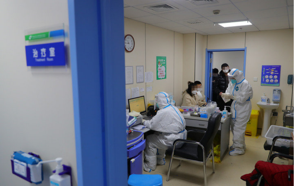 12月15日,在中国医科大学附属盛京医院南湖院区发热门诊,值班医生在为患者治疗。新华社记者 杨青 摄