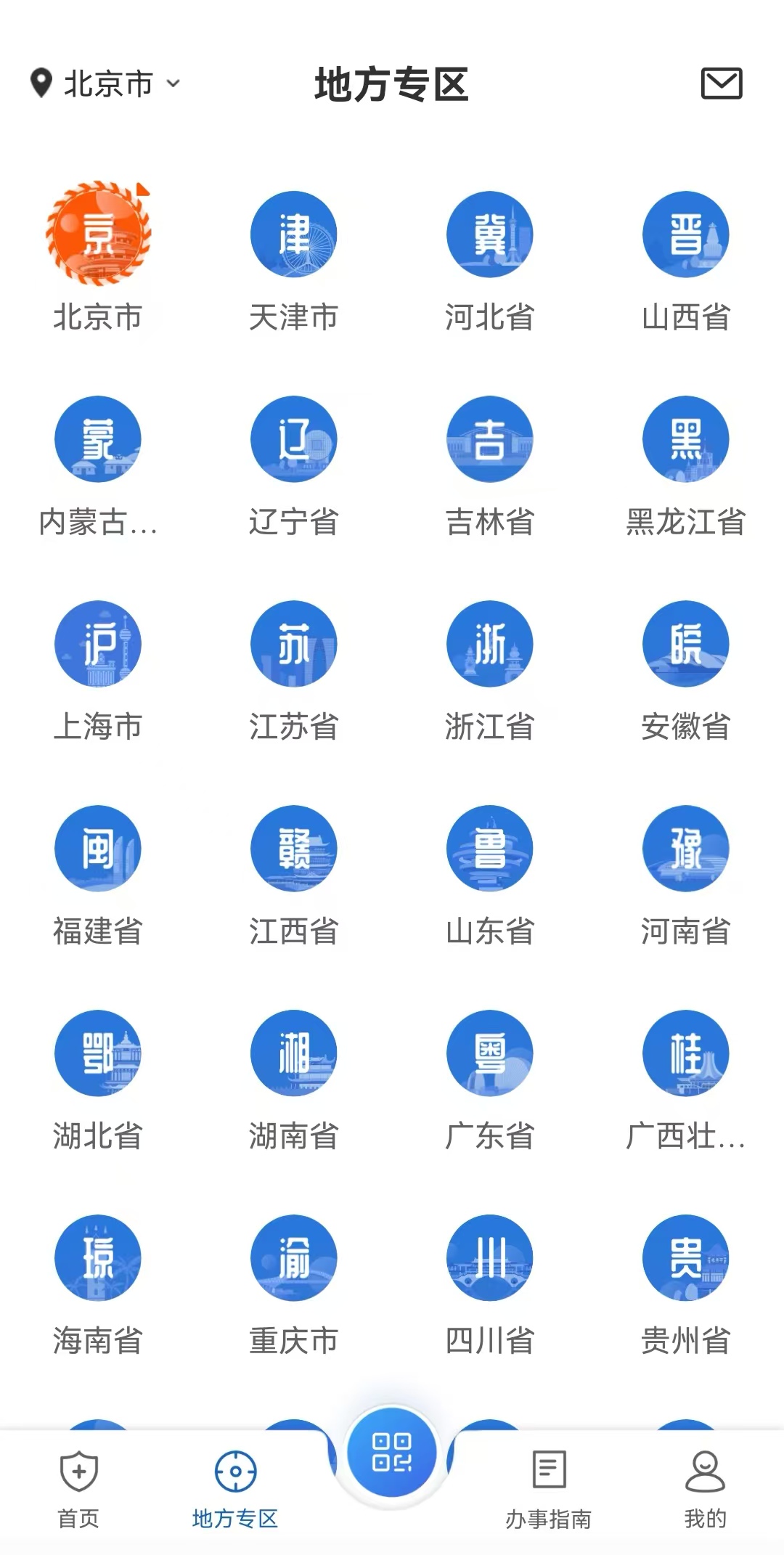 2.点击下方“地方专区”——选择“北京市”