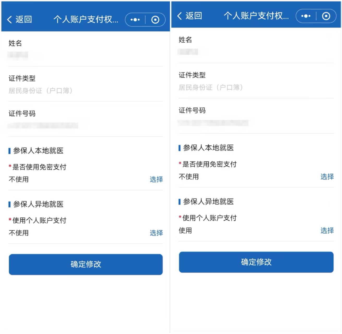 (图为不使用改为使用,点击“确定修改”,医保账户初始密码000000)