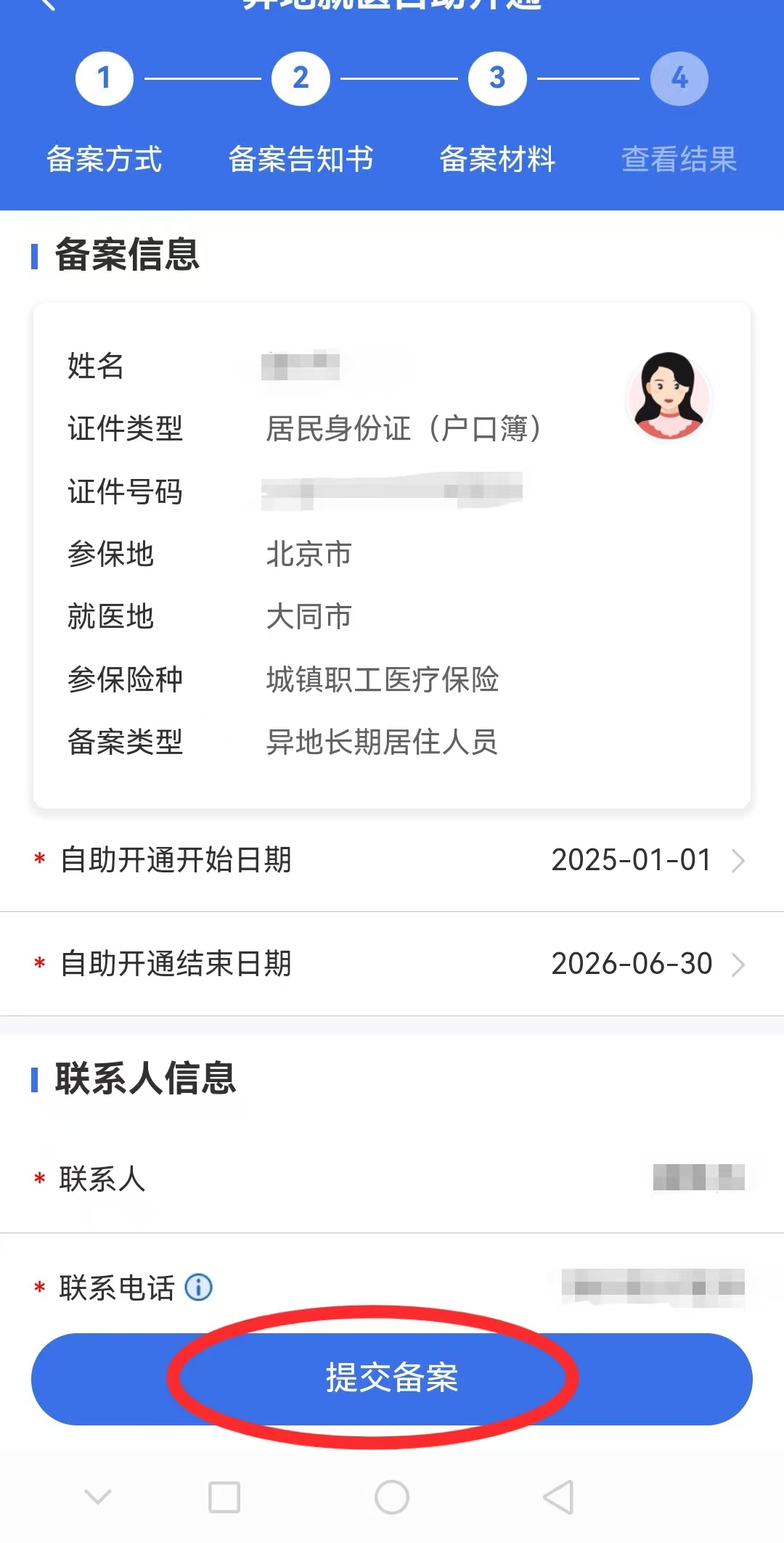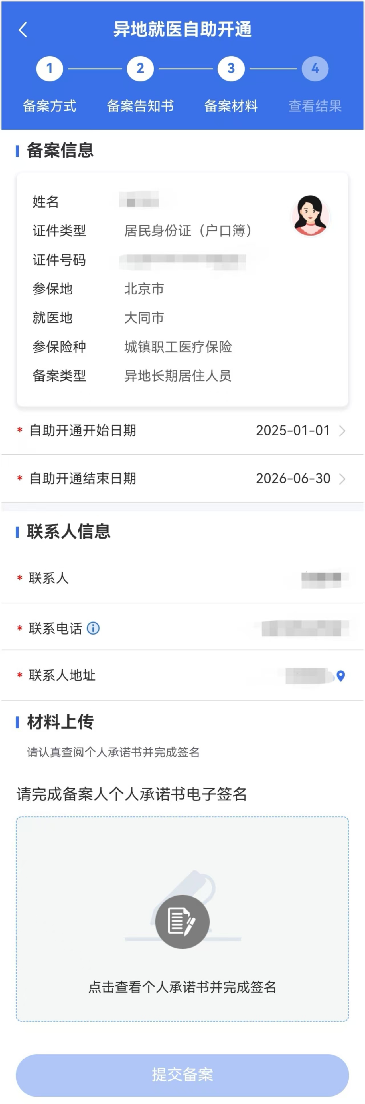 5.再次核实异地就医备案信息,确认无误后点击“提交备案”