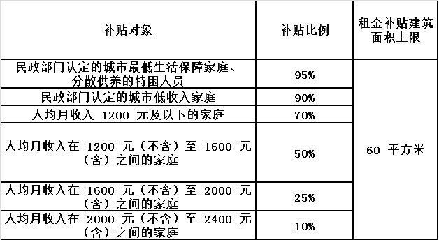二、公共租赁住房租金补贴标准: