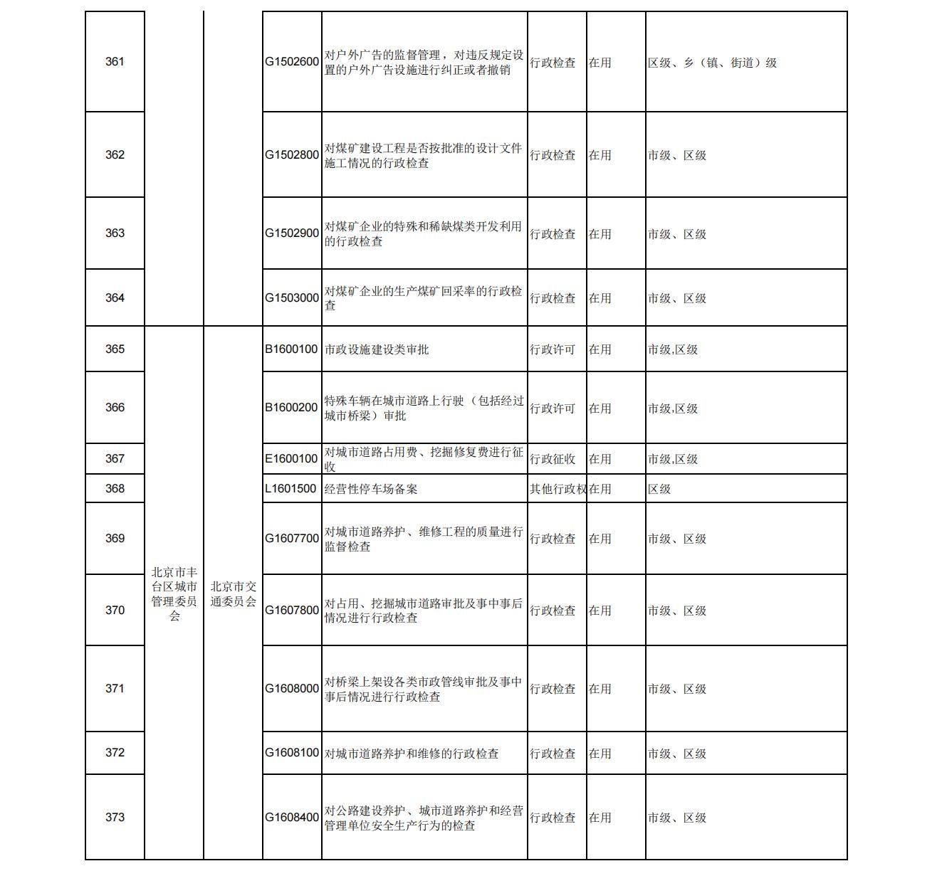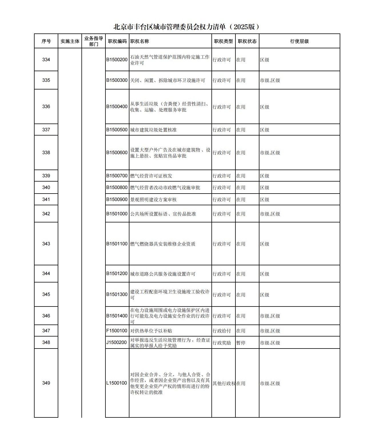 北京市丰台区城市管理委员会权力清单(2025版)-北京市丰台区人民政府网站