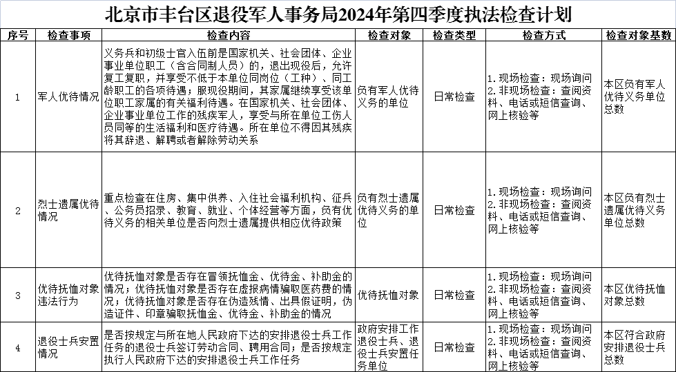 2024年第四季度执法检查计划-北京市丰台区人民政府网站