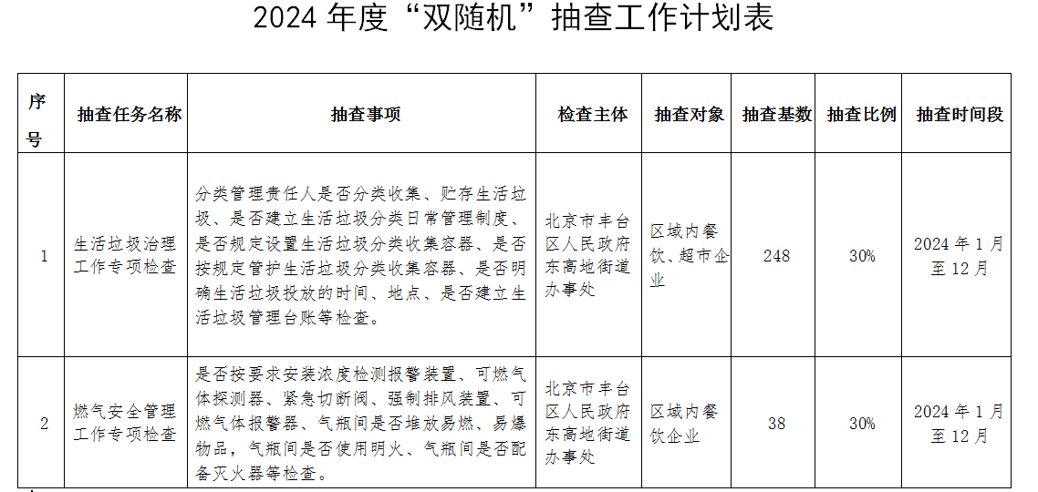 2024年度“双随机”抽查工作计划表-北京市丰台区人民政府网站