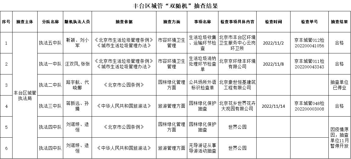 11月“双随机”抽查结果-北京市丰台区人民政府网站