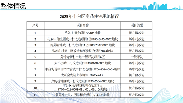 2025年丰台区商品住宅用地情况