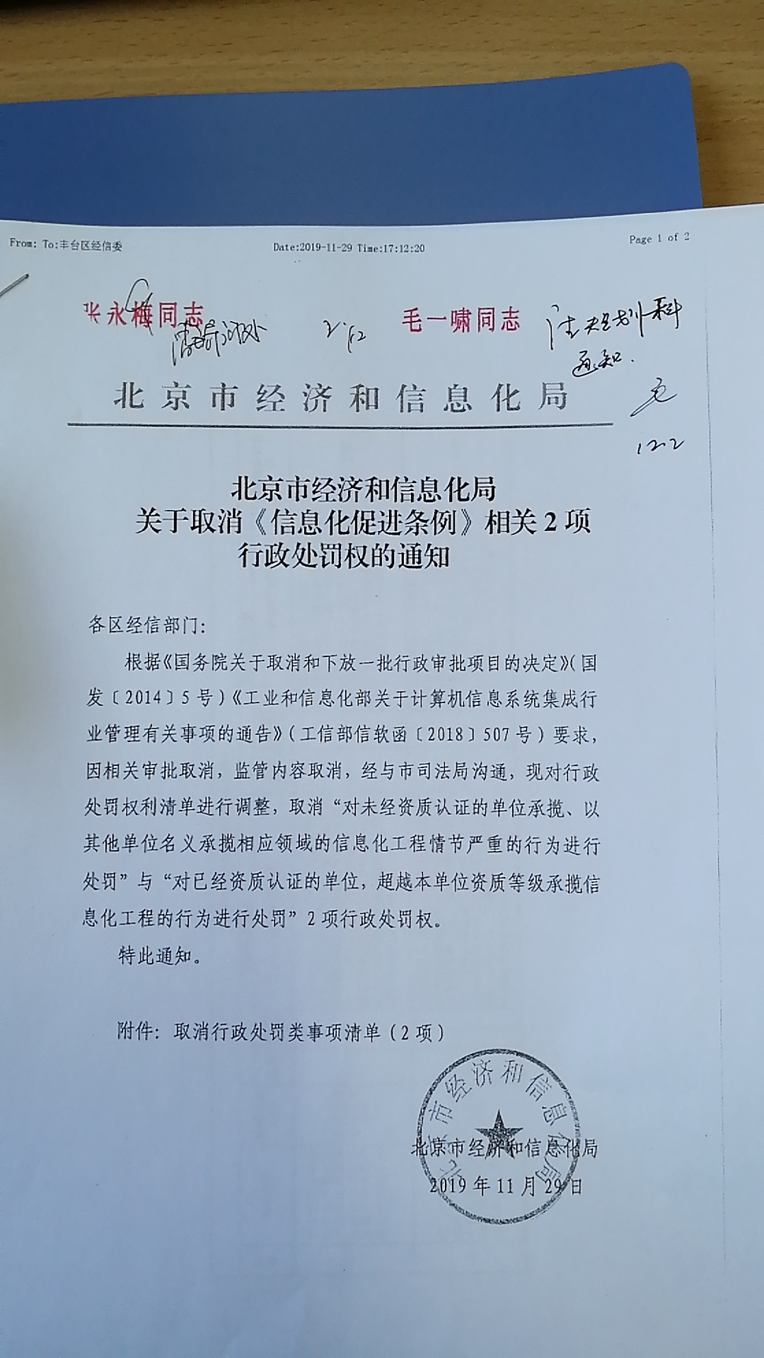 关于转发《北京市经济和信息化局关于取消<信息化促进条例>相关2项行政处罚权的通知》的通知-北京市丰台区人民政府网站