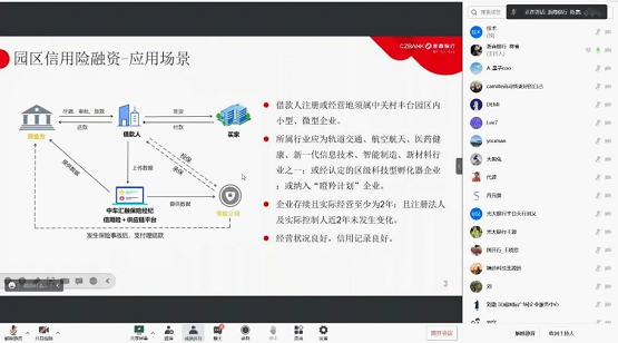 本次金融助企活动旨在更好地落实市、区复工复产工作要求,搭建金融服务平台,高效服务实体经济,加强政策和要素保障,助力企业高质量发展。来自国家开发银行、兴业银行、光大银行、浙商银行、中车汇融、中金公司、平安普惠7家金融机构相关负责人介绍了各机构特色的助企金融工具和融资解决方案。