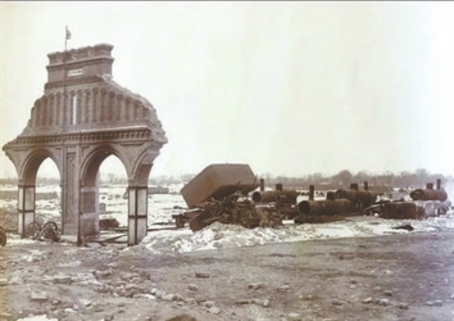 1897年,丰台机务段成立,用灰砖砌筑的矩形炼瓦式检修库建成。1900年,检修库被义和团破坏,只有东墙和匾额幸存。匾额上书写着此车房的建成年月“光绪二十三年”,此匾被蒸汽机车的黑烟熏成了黑色。