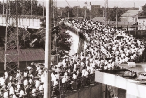 1988年,丰台大桥的重建工程启动。工程由两部分组成:一部分是四环路丰台铁路立交桥,桥长为83.3米、桥高7.55米,是当时全国最大的顶进式箱涵立交桥;另一部分是连接丰台车站前正阳大街的公路立交桥,桥长78.18米,桥宽为24.6米。经过两年的艰苦奋战,丰台大桥于1990年竣工通车。图为当时的代用桥。