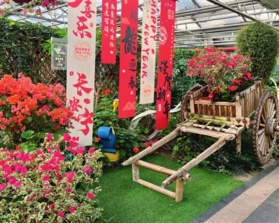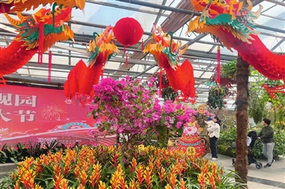 世界花卉大观园里兰花展正在俏丽争春。新春活动将持续到正月十六。此外,游客还可以欣赏到炮仗花等各种充满年味儿特色的当季花卉。