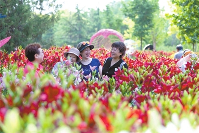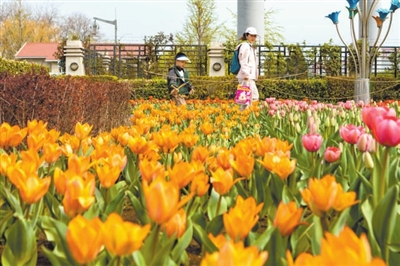 花乡公园鲜花盛放,吸引了不少市民前来赏花。赵自谦 摄