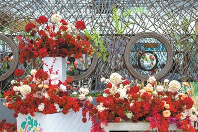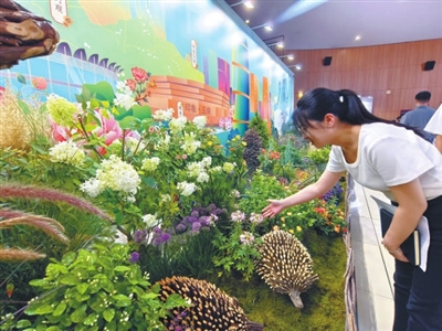 活动现场,一条以“碧水清流写画卷,花园城市看丰台”为主题的长约24米的园艺景观格外引人注目。李娜 摄