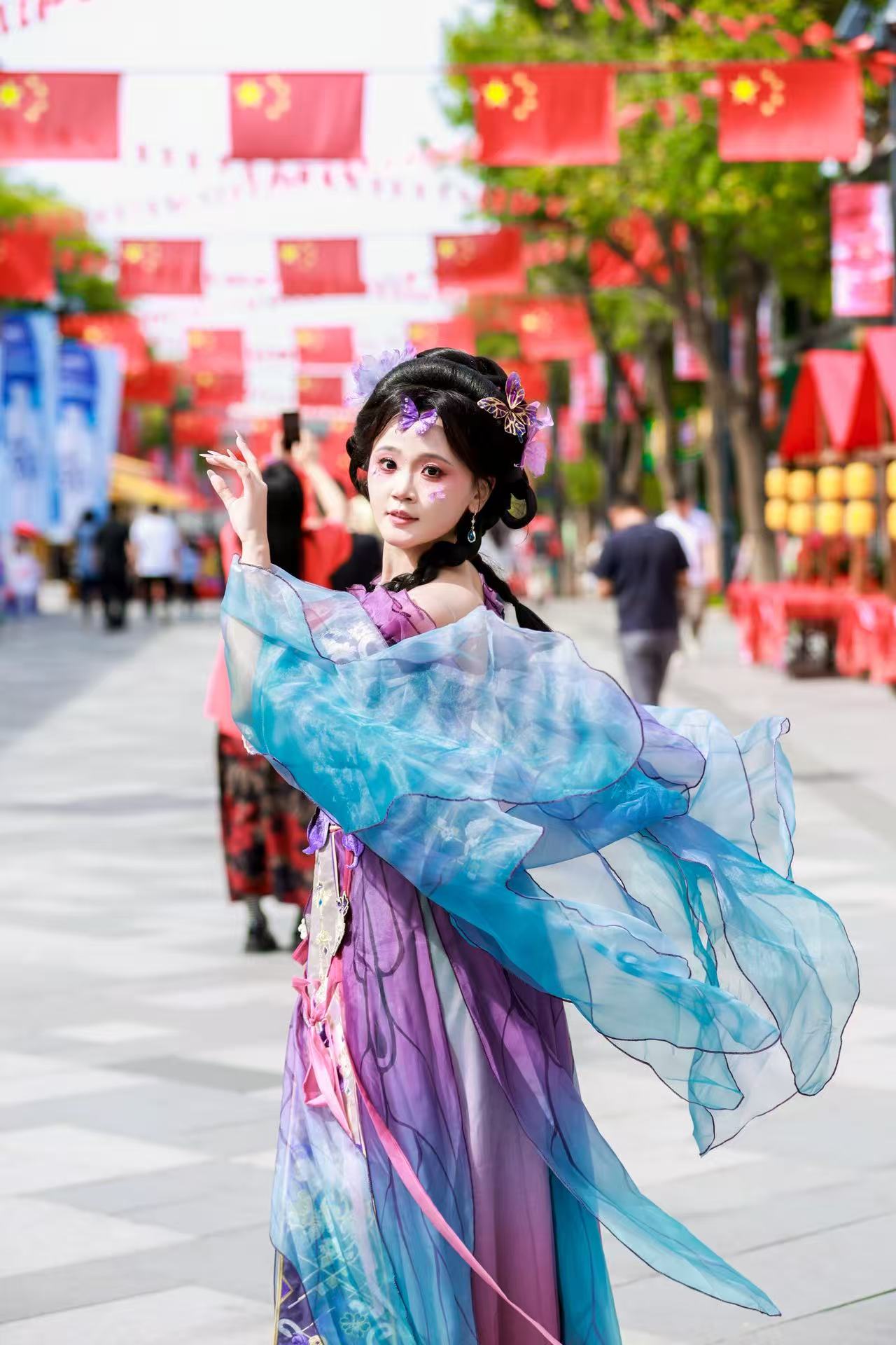 当传统邂逅潮流,长辛店街区迸发出独特魅力。10月1日,汉服巡游队伍如流动画卷穿梭街巷:侠客少年执剑而立,游客纷纷加入合影,浓烈的国潮氛围席卷全场。汉服NPC与游客对诗、投壶、射箭赢取“银票”,兑换非遗手作或参与传统游戏,互动感拉满。