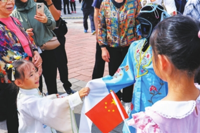 “戏韵智界”专区融合机器人、VR/MR与AI互动,打破传统观演边界;月季园中,“孙悟空”“牛魔王”高动态机甲与游客互动;银杏大道上的AI复古报纸机3秒生成个人戏曲主题报纸;身着戏服的机器狗“哮天犬”成为孩子们关注的焦点……记者了解到,7天时间里,“戏曲+科技”体验区成了网红打卡点,不少市民来这里感受传统与科技的碰撞。