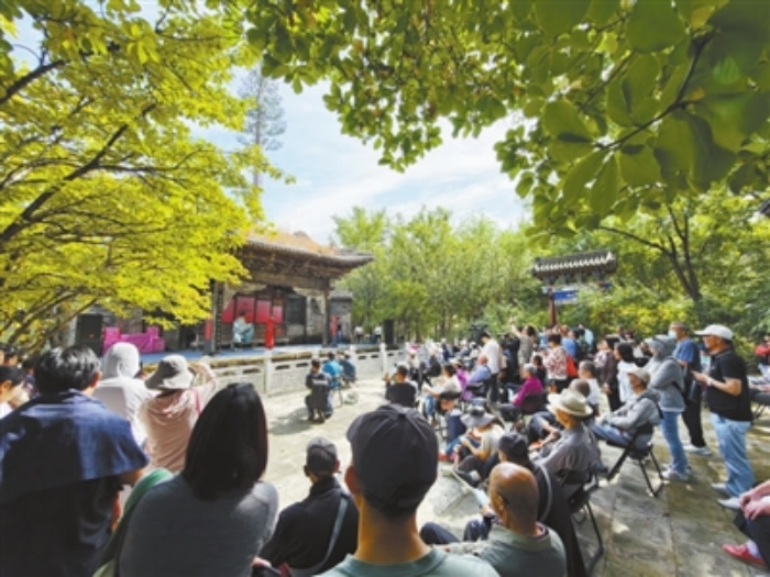 明天剧场里,氛围同样热烈。中国戏曲票友竞演优秀票友展演中,票友们虽非科班出身,却把戏曲的韵味诠释得十分到位,赢得阵阵叫好。“水墨江湖·戏绘山河”三维动画展映时,《千里江山图》等作品用现代科技讲传统美学故事,不少年轻人围在屏幕前,看得津津有味。之后的“戏不宜迟”音乐会、露营时光音乐会带来的别样旋律,又为戏曲周画上了灵动的一笔。