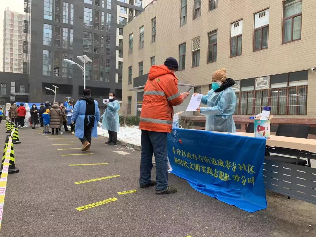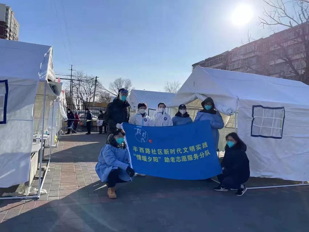 ∆丰台区新时代文明实践志愿服务总队、成寿寺街道新时代文明实践志愿服务中队、分队共同参加核酸检测宣传、组织扫码、维持秩序等抗疫现场服务工作