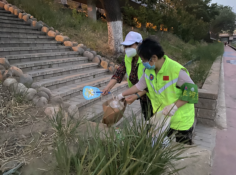 (当班河长傍晚清理河岸)