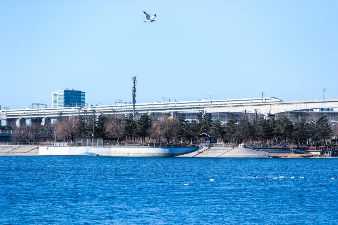近年来,随着水环境和空气质量的改善,越来越多的鸟类选择在晓月湖周边“安家”,吸引了不少摄影爱好者长期“驻扎”在这里。他们的镜头中有百年卢沟桥,有现代高铁,也有灵动的鸟儿们。