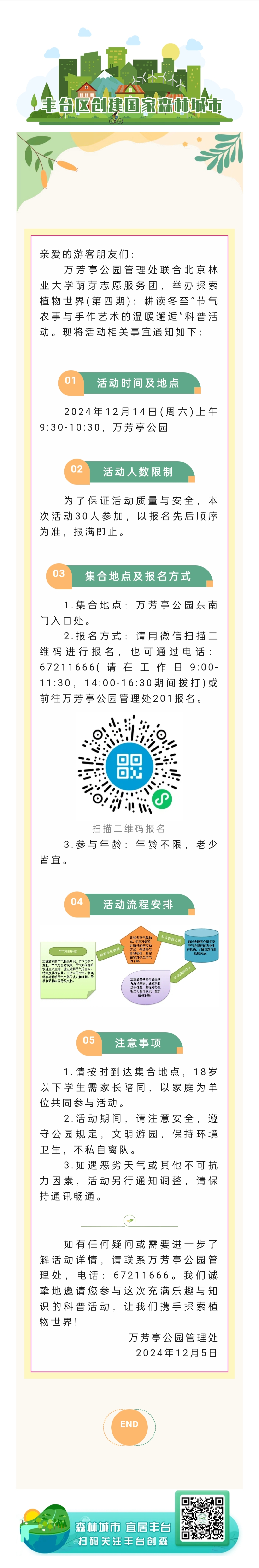 万芳亭公园耕读冬至“节气农事与手作艺术的温暖邂逅”科普活动来了