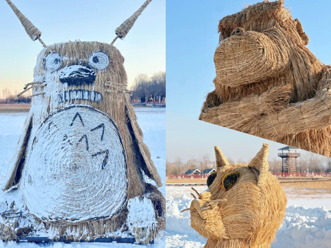 和秋风共度过美好时光的稻草人,此时此刻还没有舍得离开北京园博园,这些还在湿地冰雪秘境的小可爱们已经被温柔的雪花覆盖。