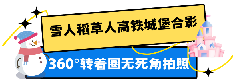 一旁高铁列车时而掠过身边,是不是也带来你对春节的遥想和对家乡的思念?傍晚玩累了回去路过欧洲园城堡,记得就着黄昏晚霞与城堡同框打一波卡~将一整个冬日最梦幻的惊喜和浪漫全部收藏起来。