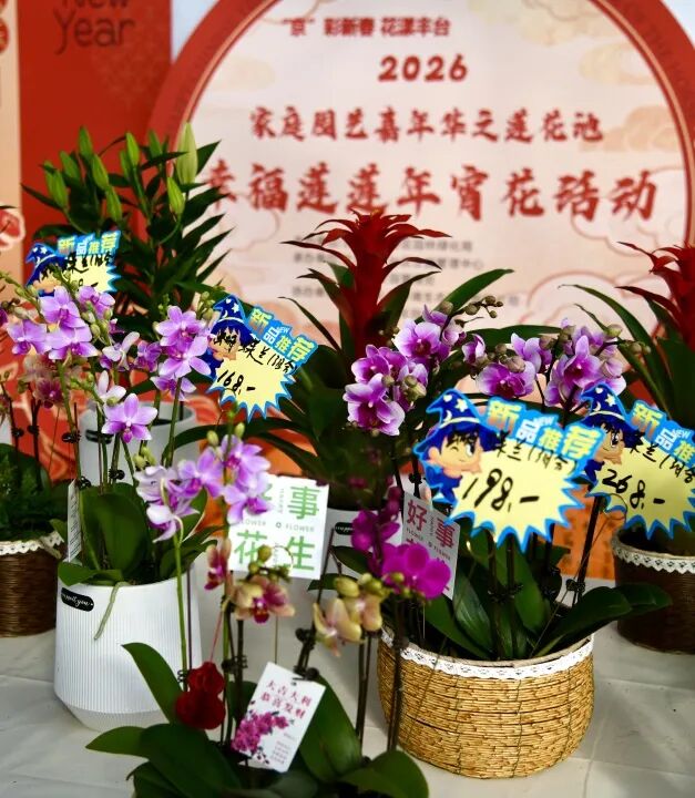 作为2026北京家庭园艺嘉年华两大主会场之一,超大花市空间里,处处弥漫着花香与年味交织的热闹气息。最近这里推出了新春年宵花系列,更有兜兰主题花展与“五花马”系列盆栽,象征“马上花开”。