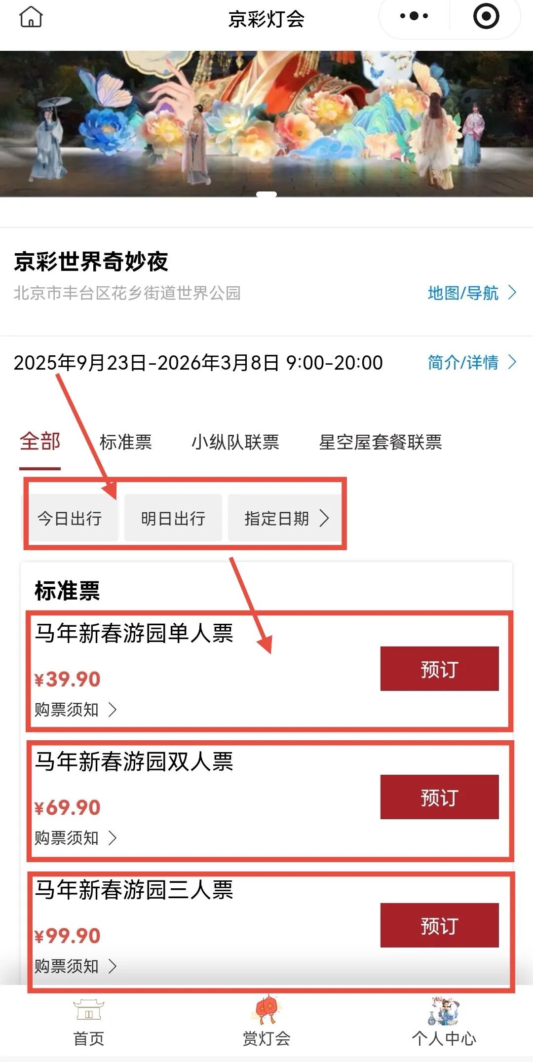 世界公园【东门】【南门】入口均设有现场售票窗口,可直接购买灯会纸质门票。
