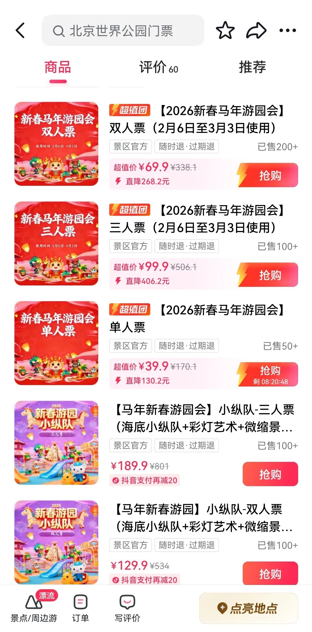 美团、携程、同程、闪优惠等APP搜索“世界公园”购买灯会门票。