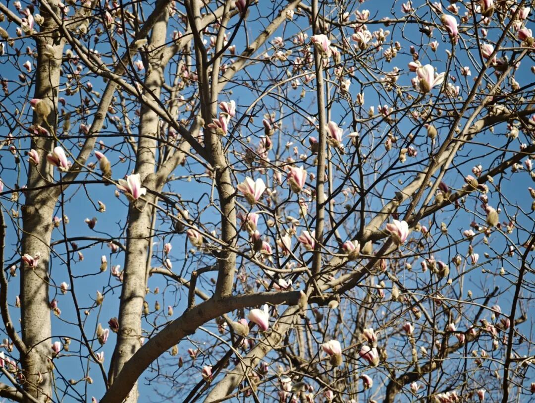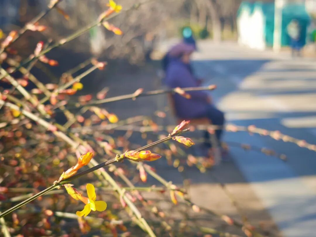 腊梅凝香,玉兰亭亭,迎春花缀满枝头
