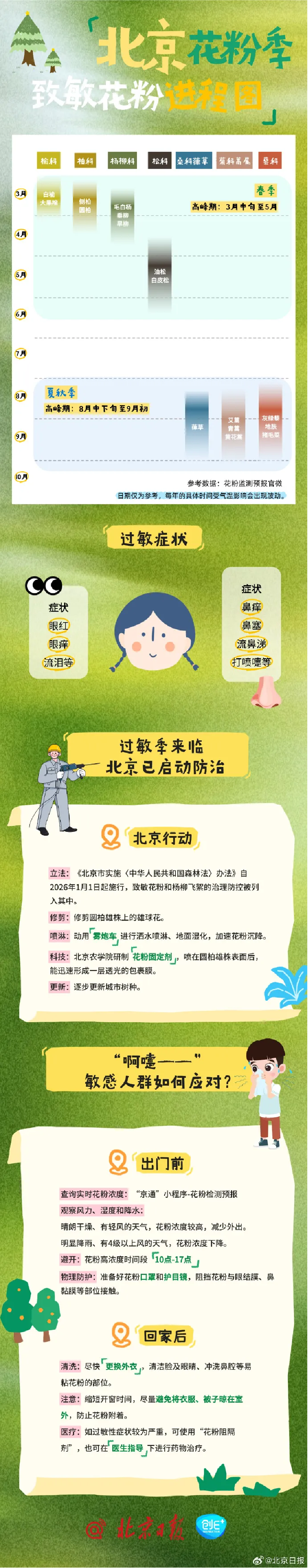 这份北京花粉季致敏花粉进程图及防范要领,送给“敏感的人”