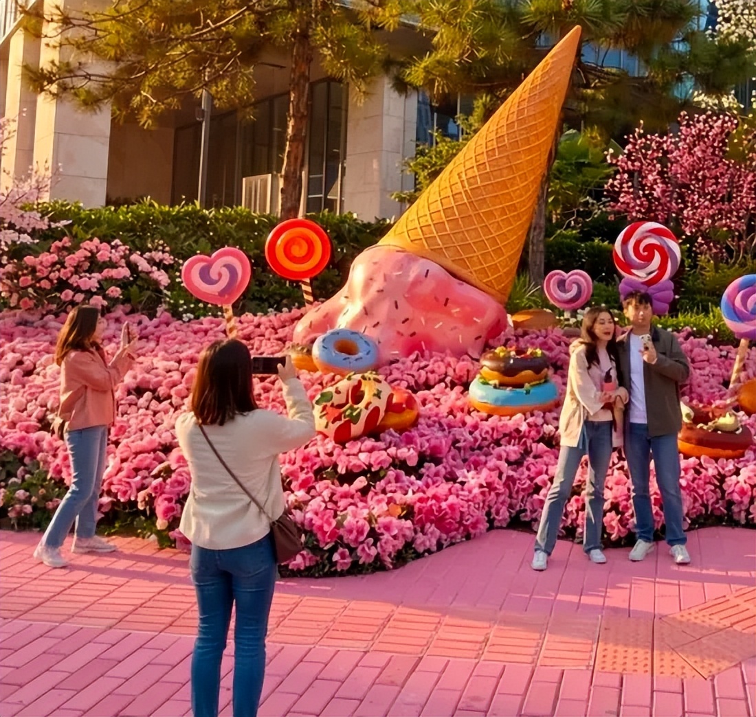 花展在楼宇畔、街角旁、商圈内、绿地中,精心布设了20余个“花香彩蛋”:不经意的街角,可与鲜花共赴“种书计划”;偶尔抬头仰望,能与卡通吉祥物花团团跨时空相遇;将丽泽SOHO大厦装进啤酒杯,地标景致融入创意场景。