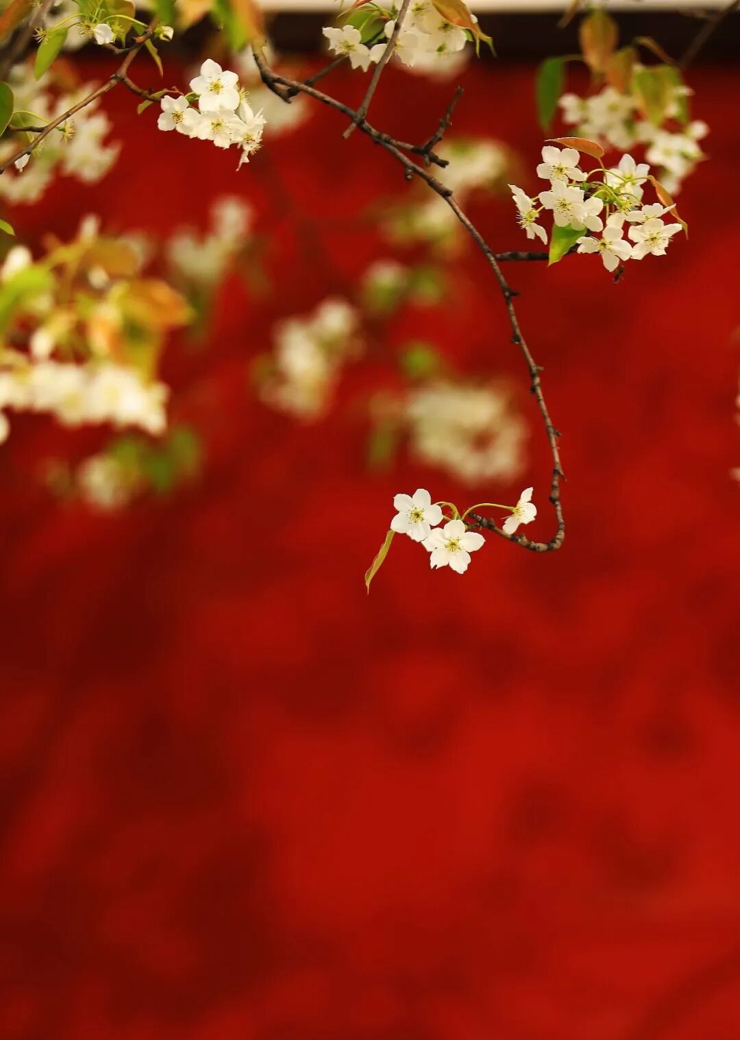 梨花胜雪,红墙如诗