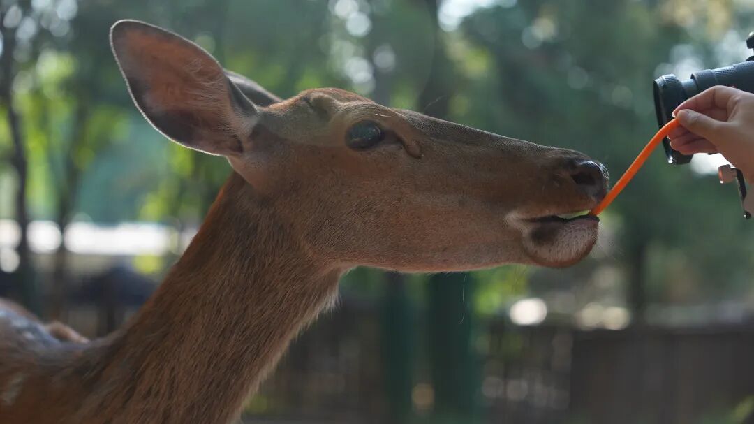 悄悄告诉你,梅花鹿最爱吃胡萝卜啦