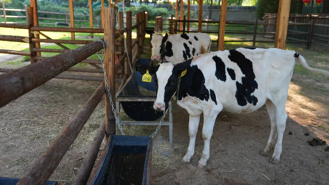 奶牛正乖乖地等着投喂