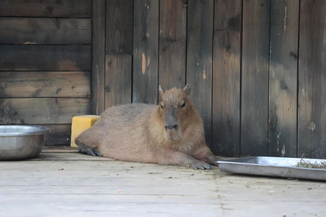 卡皮巴拉敦实地卧在旁边