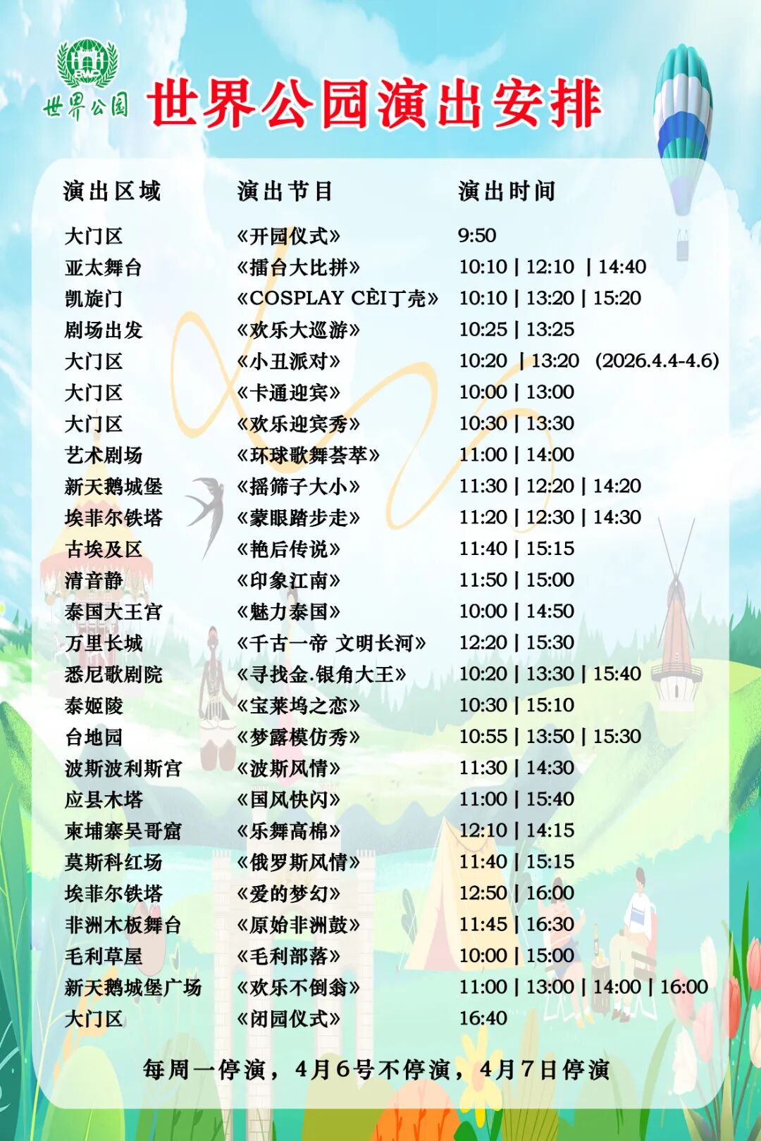 🌍全园巡游+舞台秀