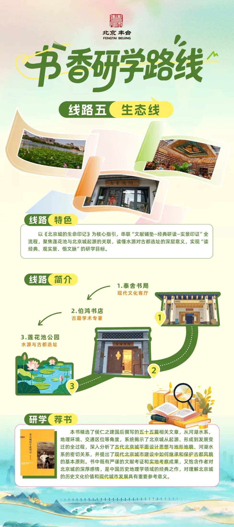 以《北京城的生命印记》为核心指引,串联“文献铺垫—经典研读—实景印证”全流程,聚焦莲花池与北京城起源的关联,读懂水源对古都选址的深层意义,实现“读经典、观实景、悟文脉”的研学目标。