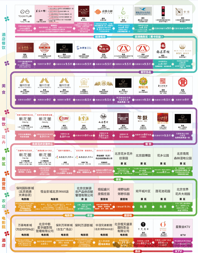 打破花展与周边业态的壁垒,本次花展重磅联动周边核心商圈、人气餐饮、潮流娱乐、精品百货,以花为媒,以票为引,为每一位持票游客送上专属特权。无需额外消费,无需复杂操作,凭花展门票即可直接享受多重优惠,让你逛展之余,轻松解锁周边消费新体验,实现“赏花海+享特惠”双重快乐。