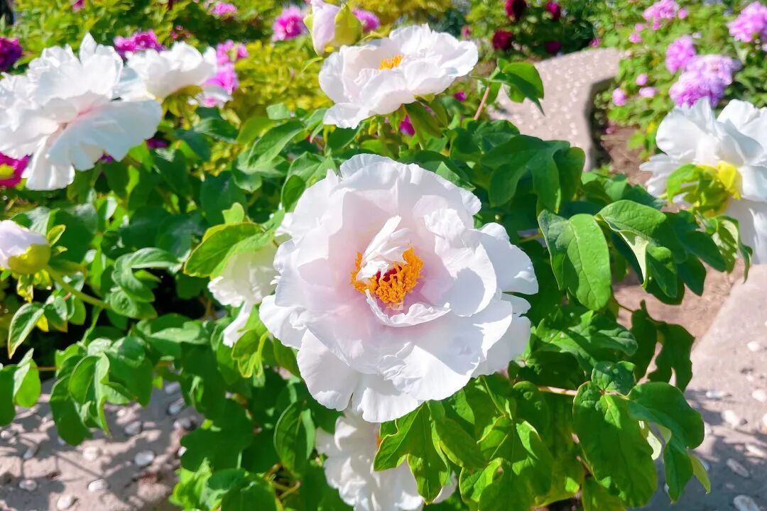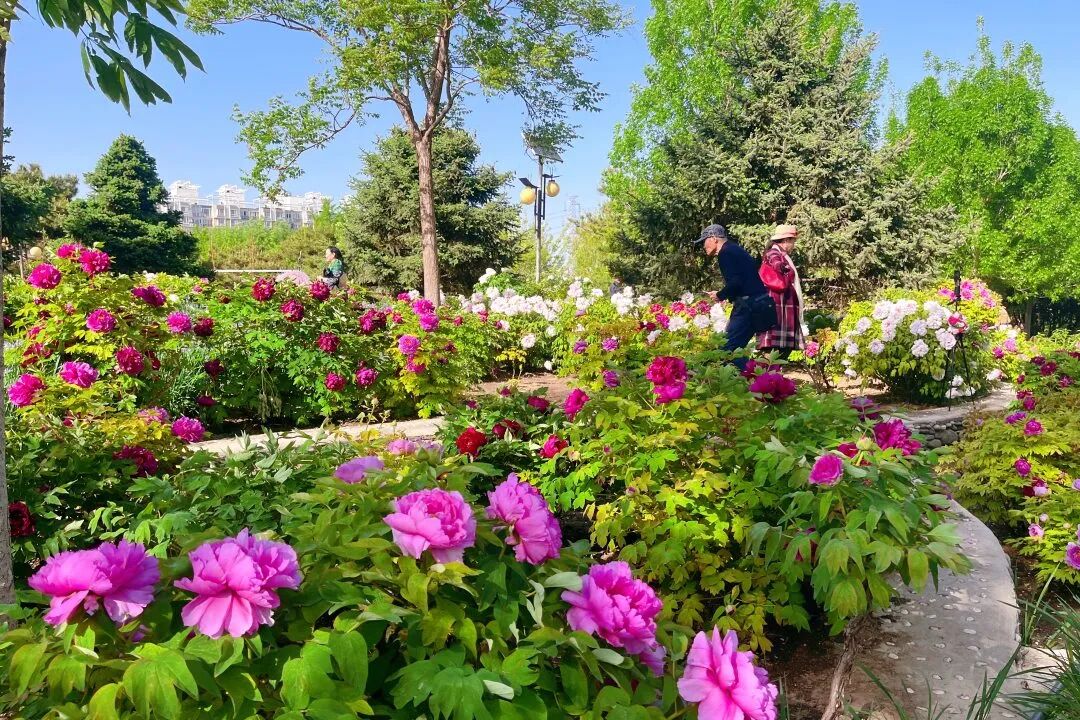 步入园区北侧,周身便萦绕着牡丹花的香味,当走近牡丹园时,满眼繁花!粉的温柔、白的纯粹、红的热烈,雍容又大气~